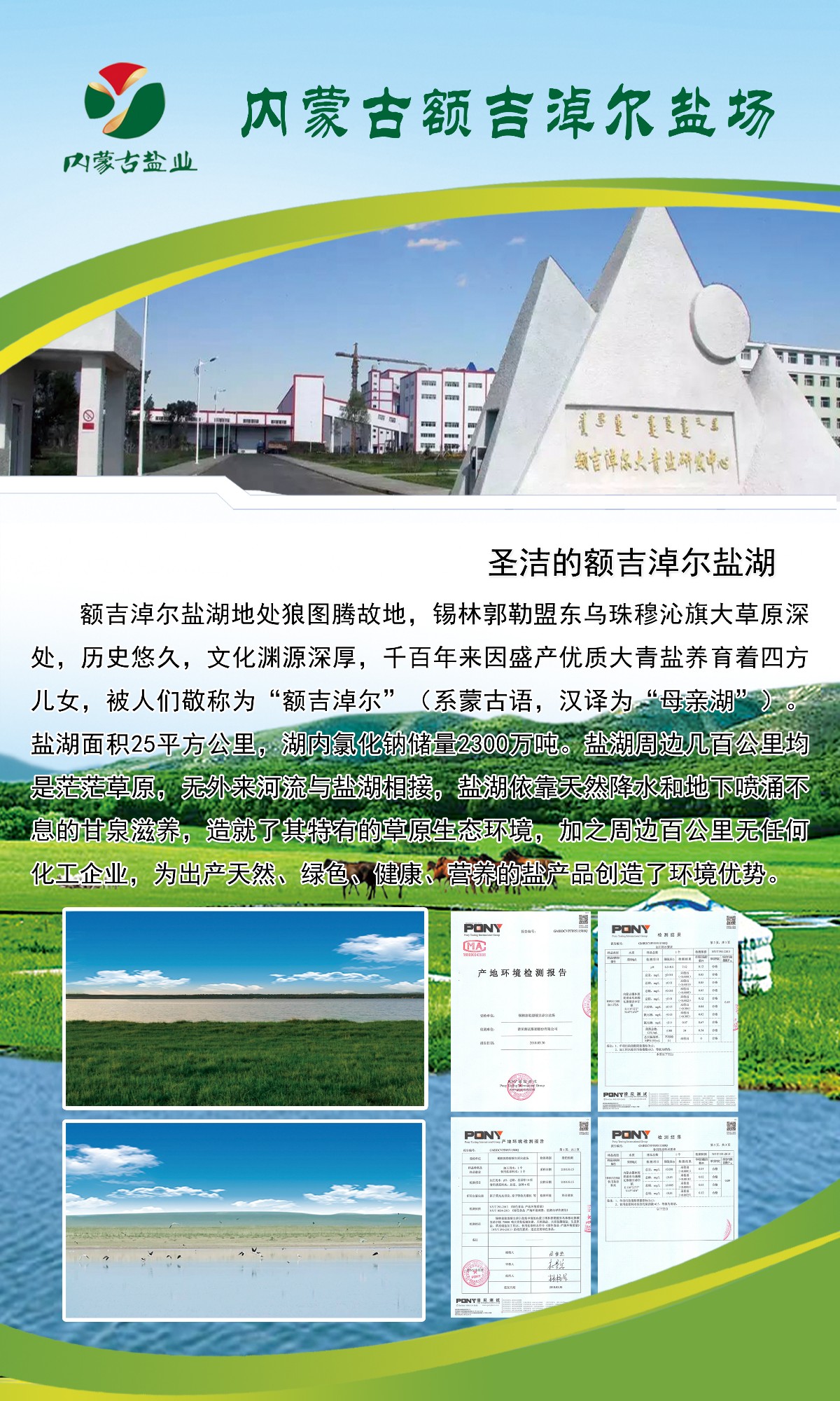內(nèi)蒙古額吉淖爾制鹽有限公司地處內(nèi)蒙古錫林郭勒草原腹地東烏珠穆沁旗境內(nèi),1946年建場(chǎng),隸屬于內(nèi)蒙古自治區(qū)鹽業(yè)公司,系國(guó)家定點(diǎn)食鹽生產(chǎn)企業(yè),年創(chuàng)利稅6000余萬(wàn)元。